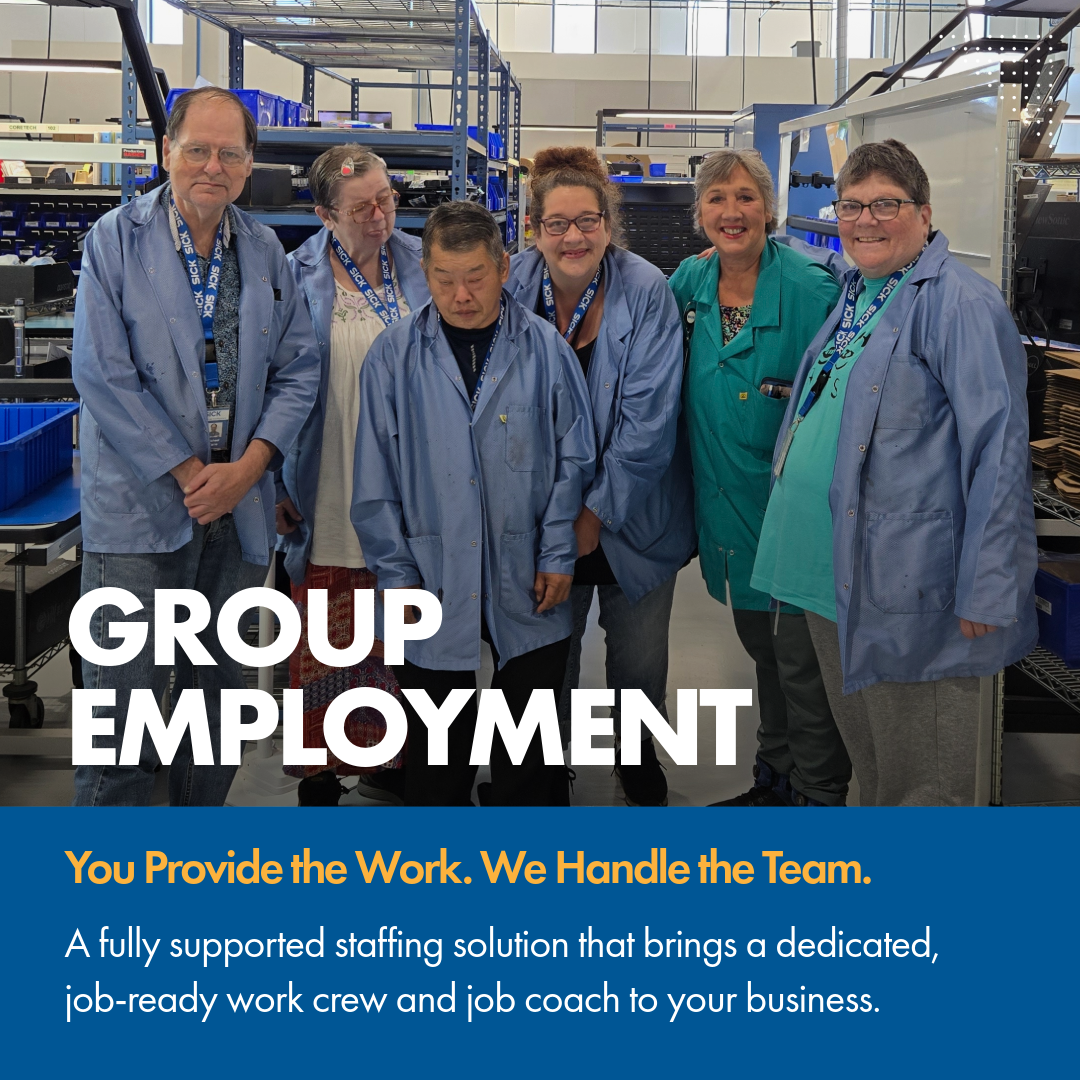 We provide opportunities for people with disabilities to earn living wages while engaging in meaningful and productive work. Results-oriented, we are experts in providing employment solutions that will meet standards of consistency and productivity. Our team will work with you to craft efficient solutions that provide proven results for your business.